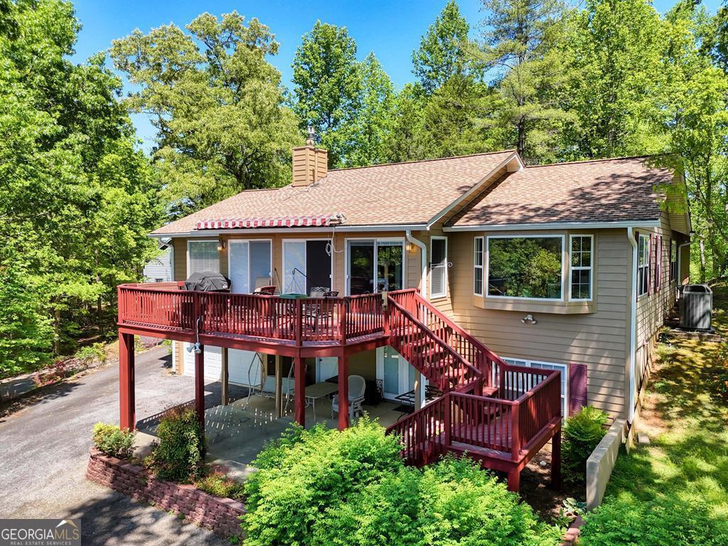 Located in the beautiful mountains of North Georgia, come experience serene living with breathtaking views of the surrounding mountains, including Brasstown Bald, the highest point in the state of GA, in this exquisite 3-bedroom, 3-bathroom home. This well kept home offers both functionality and minimal restrictions for your peace of mind. Key Features include a great room with vaulted ceiling, a stone gas fireplace with remote start, venetian blinds on all windows, offering both style and privacy, Hickory hardwood floors in all living areas except bedrooms and bathrooms, a kitchen & dining with granite countertops and ample cabinet space, black kitchen appliances complement the modern design, a master suite with a large master bedroom on the main floor with walk-in closets, a master bath with walk-in shower, tile floors, double vanity, and plenty of cabinet space, laundry room accessible through the master closet as well as a second entry door for convenience, a second bedroom on the main floor with a walk-in closet, a full guest bathroom on the main level with tile floors and the downstairs living area includes another bedroom with a large walk-in closet and full bath. Your outdoor living area includes a nice patio area, perfect for relaxing and enjoying the surrounding nature, well-maintained, minimal yard work and attractive landscaping. One-car garage on the upper level PLUS a second one-car garage on the basement level. A paved driveway that circles around the home providing separate entry and exit. Additionally, it is conveniently situated between Hiawassee and Blairsville. Close proximity to Lake Chatuge for all your lake activities. Nearby amenities including shopping, dining, and numerous activities. No HOA fees make this the perfect home for those seeking a blend of modern comforts and mountain tranquility.