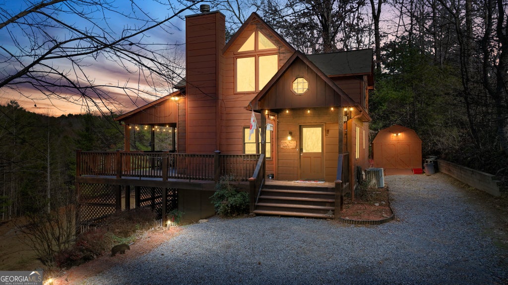 Open House 2pm-4pm. 12/21 **Rustic Mountain Retreat **in Prestigious Mountain High Subdivision Escape to the mountains with this enchanting 4-bedroom, 3-bath log cabin, thoughtfully designed for relaxation, entertaining, or as a income producing short-term rental investment. Nestled among the trees in the coveted Mountain High Subdivision, this home combines rustic charm with modern conveniences, creating an unforgettable retreat. The cabin's interior is warm and inviting, featuring a loft sitting area perfect for unwinding with a book or working remotely in peaceful surroundings. The walkout basement is a haven for guests, offering a cozy den, game area, kitchenette, and a charming bunk room that exudes comfort and fun. At the heart of the home is a stunning open-concept great room, where vaulted ceilings, a striking stone fireplace, and a fully equipped kitchen set the stage for cherished gatherings. Step outside to discover expansive porches, a private hot tub, and breathtaking mountain views-an outdoor oasis made for entertaining or quiet reflection under the stars. Perfectly situated just 20 minutes from downtown Blue Ridge, the Murphy, NC casino, and scenic hiking trails, this cabin offers both seclusion and convenience. Enjoy easy access to vibrant shops, fine dining, and endless adventures while returning to your private sanctuary in the trees. This mountain dream home is ready to welcome you, whether as a personal retreat or a turn-key rental opportunity with furnishings available to ensure an effortless transition. Don't miss your chance to own a slice of mountain paradise!