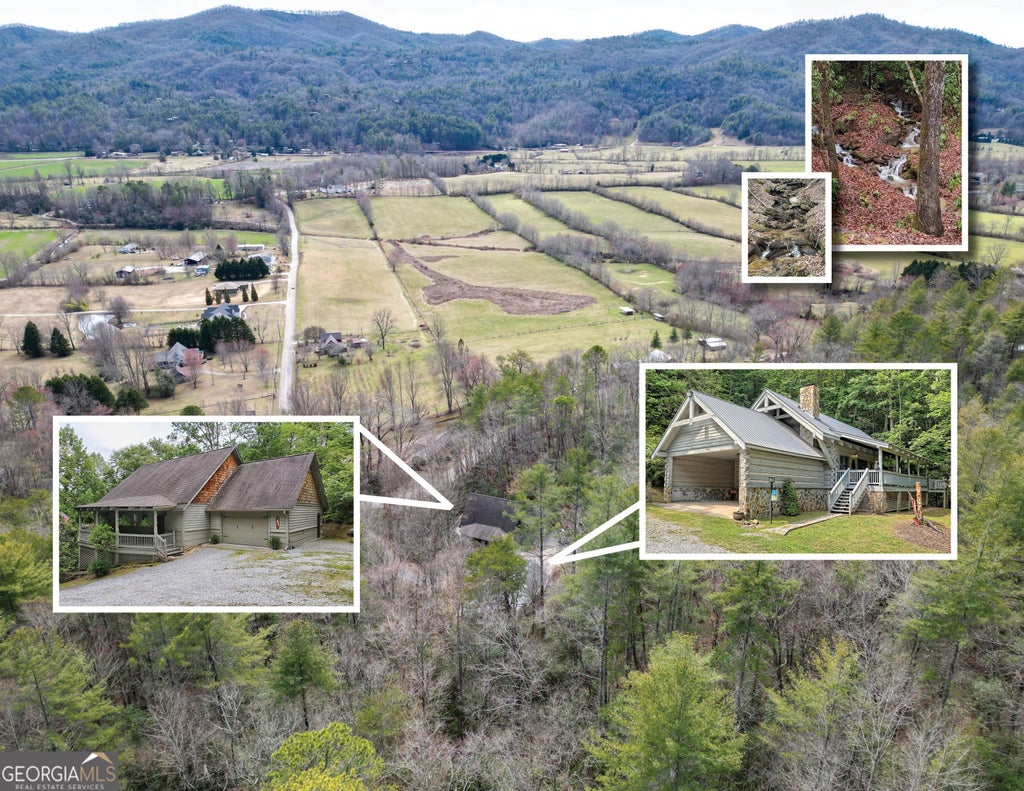 Serenity in Wolffork Valley. Two charming rustic homes situated on 5.08+/- acres surrounded by abundant wildlife and nature. Live in one home and rent the other or bring the whole family and have the in laws just steps away! A tranquil waterfall, fast flowing stream and sliding rock for the adventurous + large back decks and covered porches makes the outdoor spaces of the homes perfect for all ages. Gorgeous wood accents and quaint interiors throughout both homes will have you feeling right at home. The main house is two bedrooms and two full baths complete with hickory wood floors and kitchen cabinetry, granite countertops, an open floor plan, stainless steel appliances, tile walk in shower in the master bath, separate laundry/pantry room and a full unfinished basement perfect for storage. The spacious garage also has a toilet and sink and an additional flex room that would be perfect for an office or exercise space. The 2 bedroom, 2 full bath + loft older cabin was built from hand hewn Douglas Fir logs from Oregon and has wormy chestnut wood interior, a wood burning buck stove and a generator. The whole family will feel right at home here exploring the acreage and sleeping peacefully in the cozy homes. Please view the walk-through video! https://player.vimeo.com/video/1092581550