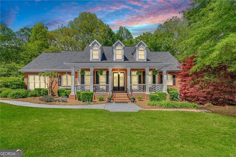 Located in the well established and sought after Cherokee Forrest Lake Lanier neighborhood just north of Gainesville, this custom-built, four-sides brick home offers timeless quality and comfortable everyday living. Enjoy community amenities including a pool and tennis courts, all while coming home to a quiet cul-de-sac lot with a lush, landscaped front yard. Step inside through double doors into a beautifully trimmed foyer that sets the tone for the craftsmanship throughout-10-foot ceilings, custom cabinetry, and rich wood-paneled built-ins surrounding the fireplace. The main level features two spacious bedroom suites and a dedicated office/study ideal for work-from-home needs. A walkout deck from main level overlooks the private, fenced backyard. The finished terrace level includes a generous recreation or family room that opens to a patio, with unfinished space remaining for storage or future expansion. Practical features include two 2-car garages and permanent stairs from the garage to the attic. Truly a rare find in a well-established, amenity-rich neighborhood.
