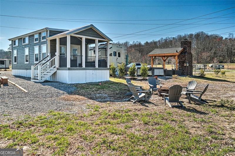 Tucked away in the gated Waterside at Blue Ridge community, this charming tiny home offers a peaceful mountain retreat with all the essentials for a relaxing getaway-or a smart turnkey investment opportunity. Step inside to a thoughtfully designed space featuring a main sleeping area, an additional bedroom/office, and a spacious loft, perfect for extra sleeping room, lounging, or storage. The cozy living area flows into a well-equipped kitchen that includes full-size appliances such as an electric range, microwave, and a refrigerator/freezer combo. A dedicated coffee bar, double sink, and plenty of cabinets make this space both stylish and functional. You won't find another tiny home with 1.5 baths in the community. Seller is offering the home + furnishings for $233,000 and at $227,000 unfurnished. Out back, you'll find one of the home's standout features: direct access to a trout creek right from your yard. Get your license and practice your fishing skills straight from your property. Whether you're fishing or simply enjoying the sound of the water, it's a serene touch you won't find every day. The deck and the fire pit area provide additional space for entertaining while soaking in the mountain air. As a guest, you'll enjoy access to all the community amenities Waterside has to offer, including a swimming pool, clubhouse with showers, laundry, and kitchen, playground for the littles, community fire pits, pizza ovens, and a dog park. There are also fishing ponds, disc golf, pickleball, a Gaga Ball pit, and flat, paved roads ideal for bikes or golf carts. Just minutes from Lake Blue Ridge, scenic trails, waterfalls, orchards, wineries, and the vibrant downtown Blue Ridge scene, this location makes it easy to explore the best of North Georgia. Harrah's Casino in Murphy, NC is a short scenic drive away for those looking to add a little excitement to the itinerary. Whether you're planning your next peaceful mountain getaway or seeking a fully furnished, rental-ready property, this tiny home offers both charm and income potential in one of Georgia's most desirable vacation destinations. *Please inquire about the turnkey real estate package if you are looking for investment property.* Contact Summer Britt with Mtg-Pro for loan information. 470-302-1176