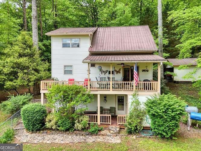 WELCOME TO YOUR MOUNTAIN GETAWAY! Check out this lovely home which would be perfect for part time or full time living. This home offers 3 bedrooms and 2.5 baths set on a 1.4-acre property with beautiful year-round mountain views. You can choose to have your primary bedroom on the main floor or on the upper floor. New floors and kitchen backsplash on the main level add to its charm. The lower level would be well suited for an in-law or guest suite. The huge garage easily accommodates 4 vehicles and still has room for the workshop. The outbuilding is perfect for a relaxing evening of entertaining with a second refrigerator and sink. There is also a shed for additional storage. The yard is fenced for your furry friends. Don't miss this one!!
