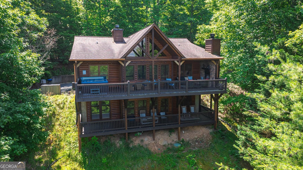 Set on 1.37 private acres with sweeping, long-range mountain views, this picture-perfect log cabin offers the ultimate North Georgia escape. End your days soaking in the hot tub beneath glowing sunset skies, then cozy up by the outdoor wood-burning fireplace - it's mountain living at its best. Inside, rustic charm meets refined comfort with exposed beams, rich wood textures, a striking stone fireplace, and a beautifully updated kitchen. The main-level primary suite adds convenience, while two separate living areas - including a finished lower level ideal for games, movies, or extra guests - create plenty of space to relax and gather. Whether you're searching for a romantic hideaway, a full-time residence, or a high-performing short-term rental, this home delivers on all fronts. You'll enjoy the peace of a private setting with easy, paved access - just minutes from downtown Blue Ridge and a short drive to the charming towns of Ellijay and Blairsville. From apple orchards and vineyards to hiking trails and waterfalls, the best of North Georgia is right outside your door. This is more than a cabin - it's a lifestyle. Don't miss your chance to make it yours.