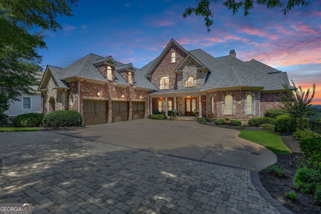 A rare opportunity to own a truly exceptional Lake Lanier estate, offered fully furnished with elegant, high-end pieces and ideally positioned on one of the most desirable lots on the lake. Located within the prestigious, gated Harbour Point Yacht Club and Marina community, this custom-built home showcases sweeping sunset views over Lake Lanier and the Blue Ridge Mountains from three expansive verandas. Designed with both luxury and lifestyle in mind, this four-level estate features an elevator, two home offices, and a heated pool and spa. A deeded boat slip is included, offering seamless access to lakefront living. The main level welcomes you with a grand two-story foyer and living room, formal study, and refined dining room. A brand-new custom chef's kitchen is outfitted with a 60" Wolf range with double ovens, Sub-Zero refrigerator, Miele coffee station, and an oversized walk-in pantry. The cozy keeping room features a stone fireplace, and the spacious primary suite includes a spa-like bath and newly designed California Closets. The terrace level is an entertainer's dream, complete with a wine cellar and tasting room, full kitchen and bar, gathering room with fireplace, 10-seat home theater, steam shower, sauna, and private guest suite. The lower poolside level adds even more space for entertaining with a second full kitchen, additional ensuite, gathering room, game room, and fitness room-all opening to the pool and landscaped, fenced backyard. Additional features include a three-car garage plus a dedicated Harley garage, a newly resurfaced pool with cabana, and numerous recent upgrades including a Crestron Smart Home system, updated irrigation, fire sprinkler and security systems, and tankless hot water.