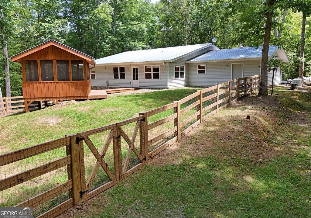 Beautifully updated and move-in ready home combines modern finishes with cozy, functional design-ideal for everyday living and effortless entertaining. Step inside to find luxury vinyl plank flooring throughout, fresh interior paint, stylish lighting, and updated bathroom fixtures that bring a contemporary, welcoming feel to every room. Key system upgrades offer lasting peace of mind, including a brand-new HVAC system, whole-house water filtration, whole-house generator, serviced well and septic, new hot water heater, and gutters with leaf guards. Designed with both comfort and accessibility in mind, this home features extra-wide doorways, open hallways, and level entryways for ease of movement. The inviting living room is anchored by a beautiful stone wood-burning fireplace, while the spacious parallel kitchen provides generous cabinetry, expansive counter space, and a massive walk-in pantry-perfect for storage and meal prep. A convenient laundry room is located just off the kitchen with level access. Enjoy seamless indoor-outdoor living with a bright sunroom that leads to a large, fenced backyard complete with a private screened gazebo and seasonal mountain views. The spacious master suite offers a true retreat with a Jacuzzi tub and an oversized, tiled walk-in shower. Outdoor amenities abound, including a charming covered rocking chair front porch, a powered outbuilding with a garage door, and a storm/root cellar with electricity-perfect for storage, workshop space, or emergency shelter. With ample parking, an attached garage, a detached garage/workshop, and plenty of room to roam, this property is ideal for outdoor enthusiasts, hobbyists, or anyone looking for versatile living. Minimal restrictions (no mobile homes, no pigs) offer flexibility while preserving the peaceful character of the neighborhood. Whether you're hosting gatherings, exploring the nearby woods on foot or ATV, or simply enjoying the views from your deck, this home offers the best of comfort, style, and function. A rare opportunity to own a thoughtfully renovated home with modern upgrades, exceptional outdoor spaces, and true move-in readiness.