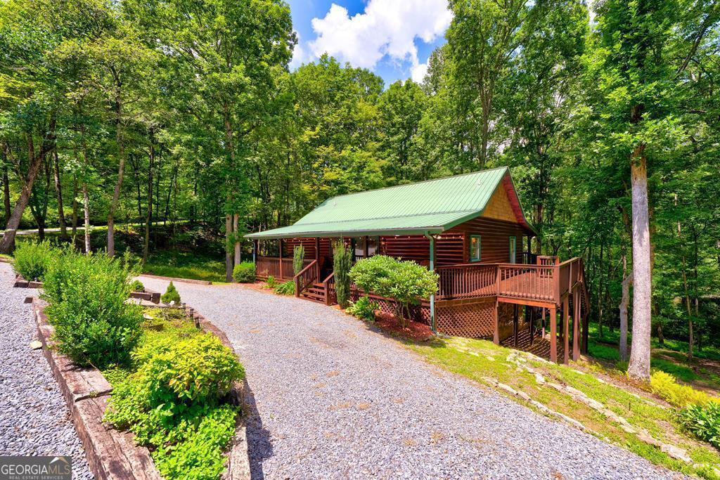 Escape to your mountain sanctuary in the heart of the Aska Adventure Area! This beautifully furnished 3-bedroom, 3-bath cabin is tucked inside a gated community, offering both privacy and peace of mind. Just one minute from the scenic Toccoa River and surrounded by miles of hiking trails and protected forestry land right out the back door, it's a dream location for outdoor lovers. Nestled in a serene natural landscape, this retreat offers tranquil moments and opportunities to watch local wildlife from the comfort of your wrap-around porches. The spacious layout includes a main-level master, two cozy living rooms with stone fireplaces, a well-appointed kitchen, and a fully finished basement with a newly remodeled guest suite featuring a custom-tiled shower, fireplace, mini kitchen/wet bar-ideal for hosting friends or extended family. The community offers an all paved access, making it easy to enjoy the natural beauty that surrounds you year-round. Additional perks include a hot tub, a whole-house generator, and a location perfect for full-time living, a vacation escape, or a short-term rental investment. This is mountain living-steps from adventure, water, and wilderness-in one of Blue Ridge's most sought-after areas. (all decks have been beautifully stained/metal roof pressured washed and screws replaced)