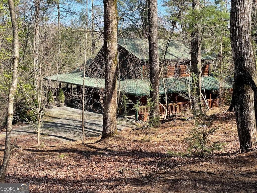 Welcome to your picturesque mountain retreat in the heart of Epworth, GA, just a stone's throw away from the vibrant downtown of Blue Ridge! Nestled amidst the serene beauty of nature, this charming log cabin offers the perfect blend of rustic charm and modern amenities, making it an ideal destination for unforgettable getaways. Step inside to discover a cozy haven with three bedrooms and three full bathrooms, providing ample space for relaxation and rejuvenation. Hardwood floors grace the first and second floors, exuding warmth and elegance throughout, while plush carpeting in the basement adds an extra layer of comfort. Get cozy by the wood burning fireplace on the main floor or enjoy the gas fireplace while playing games in the basement. The loft area has been cleverly converted into a bunk room, providing a cozy retreat for additional guests or little ones seeking their own private sanctuary. This area could also be converted to an office. Outdoor enthusiasts will delight in the abundance of amenities awaiting them. The wraparound porch beckons you to soak in the breathtaking views while sizzling up a feast on the gas grill, perfect for enjoying al fresco dining with loved ones. Indulge in ultimate relaxation on the screened porch, where a luxurious hot tub awaits to soothe your senses. Stay cozy on cooler evenings by the gas fireplace, or catch up on your favorite shows with the outdoor TV, all while being surrounded by the tranquility of nature. Venture down a few steps to discover your own slice of paradise next to Fightingtown Creek, one of north Georgia's premier trout streams. Gather around the fire pit and create cherished memories under the starlit sky, sharing stories and laughter with family and friends. Conveniently located less than 20 minutes from downtown Blue Ridge, you'll have easy access to a plethora of attractions and activities.