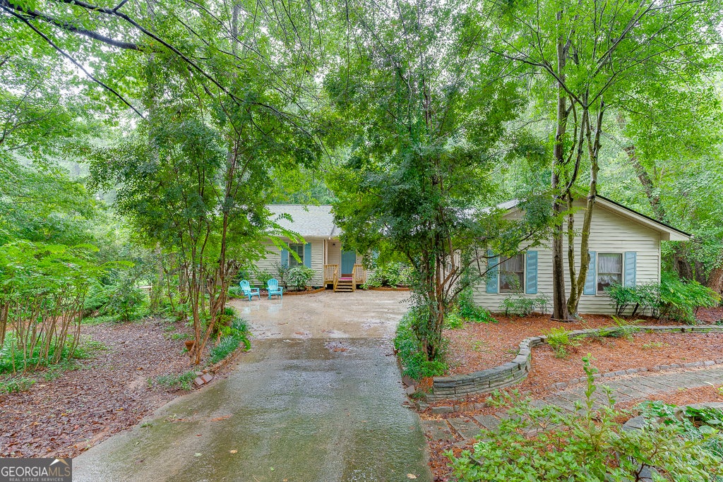 Welcome to your private retreat in the woods! This charming 3-bedroom, 2-bathroom ranch sits nestled on a beautifully wooded lot with incredible privacy in both the front and back yards. Step inside to find a spacious great room with soaring vaulted ceilings and a cozy brick fireplace, ideal for gathering and relaxing. The bright and airy sunroom-newer and filled with windows-offers peaceful views of nature and adds an amazing bonus space for year-round enjoyment. The kitchen features ample cabinet storage, a breakfast bar, and custom glass-front cabinetry, with a view to the living space and sunroom beyond. The primary suite includes a generous bath with a double vanity, upgraded tile shower, and modern finishes. Enjoy serene mornings and tranquil evenings on one of the multiple rear decks, perfect for entertaining or simply taking in the natural surroundings. Additional features include a side-entry garage, dedicated laundry/mudroom space, and a newer roof for added peace of mind. All of this located in a quiet setting, yet just minutes from amenities, schools, and shopping.