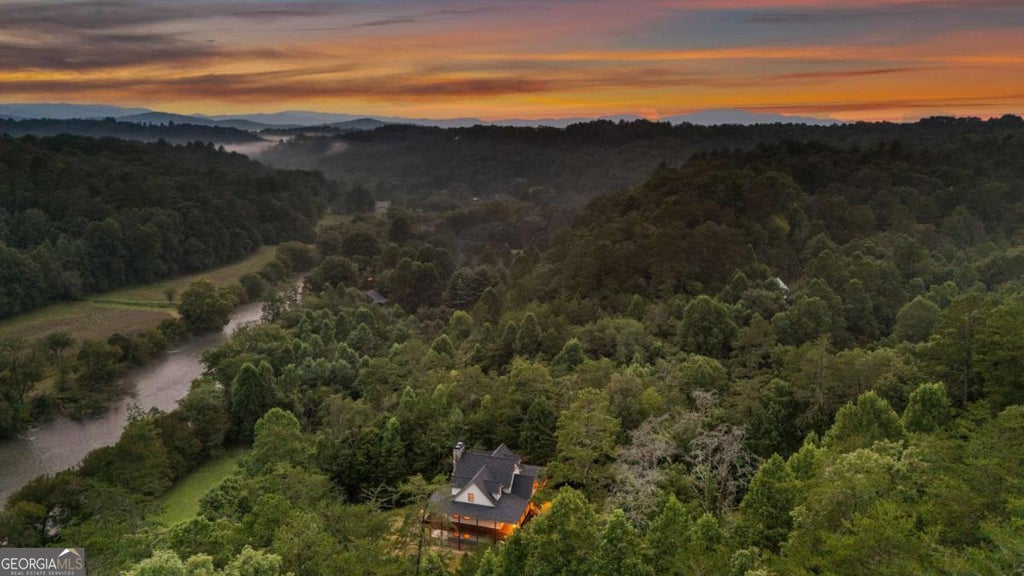 Where the river bends through the Blue Ridge Mountains, opportunity like this is rarely offered. Set on over 18 pristine acres with 1,000 feet of frontage on the coveted Toccoa River, this private estate in Toccoa River Forest captures the very best of North Georgia living. Long-range mountain views frame the backdrop, while both the river - renowned for its trout fishing - and a charming creek along the west side of the property offer endless possibilities for relaxation or recreation. Within the acreage are six additional buildable lots, creating exceptional potential for a family compound, private retreat, or investment vision. The residence itself, with over 3,000 square feet, is a home of substance and potential-its warm wood interior, soaring cathedral ceilings, and floor-to-ceiling stone fireplace provide a timeless canvas for your vision. A full finished basement expands the living space, creating room for gatherings, hobbies, or multi-generational living. Whether reimagined into a modern retreat or preserved with rustic elegance, the bones are strong, the spaces are generous, and the setting is unmatched. Here, privacy is absolute, yet you're just a short drive to the shops, dining, and wineries of Blue Ridge, along with hiking, waterfalls, and Lake Blue Ridge. For those seeking a legacy property-whether as a personal retreat, family compound, or investment in one of the area's most sought-after riverfront settings-this estate offers a once-in-a-lifetime opportunity.