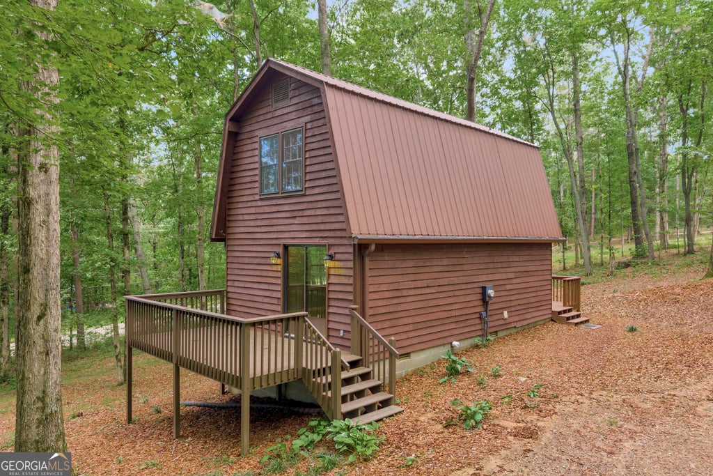 Charming Cabin Retreat! This 1BR/1BA cabin with a bonus room is nestled on a spacious, level .92-acre wooded corner lot, offering both privacy and convenience. Close to Alpine Helen, Historic Dahlonega, Wineries, hiking trails with easy access to town and GA 400, making it perfect for everyday living or weekend getaways. Inside, the home is move-in ready with fresh paint and durable solid-surface flooring throughout. Features include a metal roof, community water, and a new HVAC system (2022) for comfort and peace of mind. Even better-this cabin is eligible for short-term rental, making it a fantastic opportunity for a first-time buyer, vacation getaway, or investment property....NO HOA!! Affordable, charming, and versatile-don't miss your chance to own a piece of the American Dream!