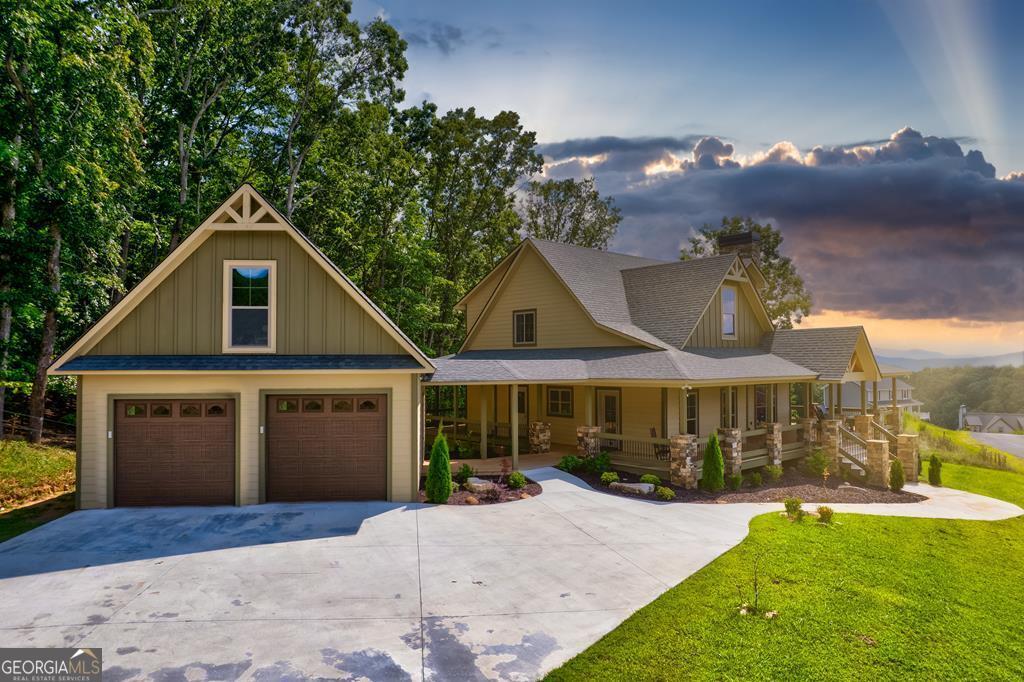 FULLY FURNISHED and extra space to spread out!!! OVER 4000 SQ FT OF HEATED AREA. How about the need of an exquisite mother-n-law suite? Let us introduce you to this amazing low maintenance new construction that has plenty of that plus a breath-taking year-round mountain view that is layers upon layers!! You can sit and absorb this amazing beauty along with the rolling pasture views from the wrap around oversized covered porches taking in approx 1400 sq ft, while cozying up to any of the 4 fireplaces (3 gas and 1 wood burning). Inside the home boasts of 2 complete kitchens, game room, multiple living spaces, granite counter tops, tongue and groove interior, tiled showers, extra-large 2 car garage with bonus 600+ sq ft flex space above that is heated and cooled separately. Bring the friends and family to enjoy the space of having 4 large bedrooms, 3 full baths, and a luxury added bonus of 2 1/2 baths along with the bonus loft and the exquisite furnishings!! You can live and entertain in high end style in this stunning custom home located in one of Fannin County, GA's newest premier gated communities, Big Valley!!! This one is ready for you!! Schedule showing today. Located just minutes from both Blairsville and Blue Ridge where all the fun begins from wineries, shopping, outdoor life, festivals, to fine dining! **Short term rentals are allowed and would make for a very luxurious vacation home rental.