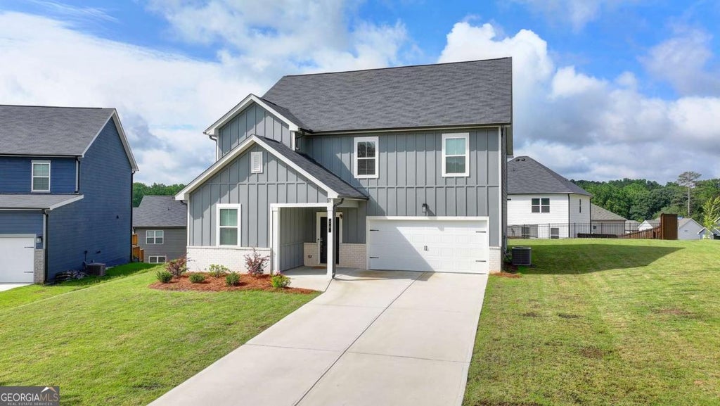 Discover the perfect blend of comfort, convenience, and modern living in this stunning Dawsonville home, located just 2 miles from GA-400 in the sought-after Dawson Grove community. Set on a north-facing corner lot at the end of a cul-de-sac, this property offers one of the largest yards in the neighborhood-providing both privacy and plenty of outdoor space to enjoy. Elevated on a premium homesite, the home boasts open, scenic views. Step inside and you'll be welcomed by the popular Jordan floor plan, featuring an open-concept layout designed for both everyday living and entertaining. The chef's kitchen showcases a large granite island, elegant white cabinetry, a full tile backsplash, and flows seamlessly into the great room with its dramatic floor-to-ceiling fireplace. Luxury vinyl plank flooring carries throughout the main level, bathrooms, and laundry for a sleek, low-maintenance finish. Upstairs, the spacious primary suite includes a walk-in closet and a private bath with a walk-in shower and linen storage. An oversized laundry room adds convenience for busy households. With five bedrooms in total-including a guest suite on the main level-there's space for everyone. This home is also about lifestyle. Families will appreciate the private community path to Blacks Mill Elementary, while outdoor lovers will enjoy nearby Dawson Forest mountain biking trails and Lake Lanier. Shopping and dining at the North Georgia Premium Outlets are just minutes away. The neighborhood itself offers sidewalks, streetlights, and a community pool with cabana. Don't miss your chance to own one of Dawson Grove's best homes-where space, style, and location come together beautifully.