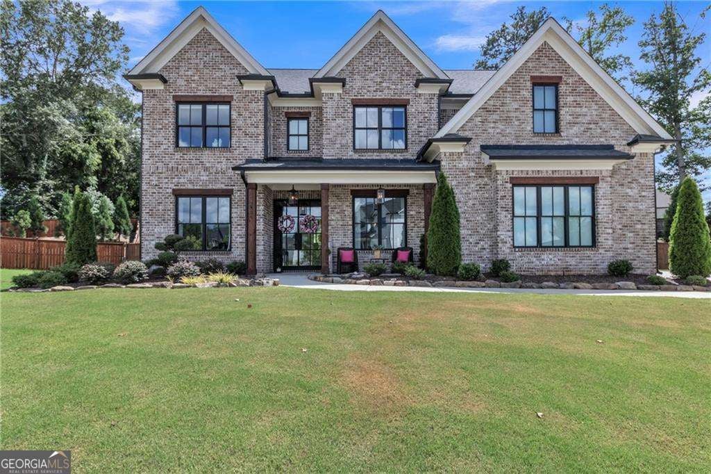 Experience timeless elegance and modern luxury in this stunning 5-bedroom, 4-bath home built in 2021, ideally situated on a spacious lot in Buford's most desirable community. From the moment you step inside, you'll be captivated by the refined entry, soaring ceilings, extensive trim work, and upscale finishes throughout. The open-concept layout features a show-stopping chef's kitchen with quartz countertops, oversized island, stainless steel appliances, custom lighting, and designer cabinetry-flowing seamlessly into the coffered-ceiling living area with stone fireplace and panoramic views of the private backyard oasis. A stylish formal dining room with paneled walls and statement chandelier provides the perfect setting for entertaining. The main-level guest suite and a sleek full bath with floor-to-ceiling marble tile offer both function and elegance. Upstairs, discover a luxurious owner's suite with a dramatic accent wall, spa-like bath, and generous closet space, along with secondary bedrooms, a loft/media room with custom shelving, and a convenient laundry closet with built-in cabinetry. Outdoors, unwind in the resort-style yard complete with a sparkling pool, lounging area, and professionally landscaped grounds. Located in a premier community with clubhouse, pool, playground, sidewalks, and proximity to top-rated schools and shopping-this home is the perfect blend of comfort, style, and lifestyle convenience.