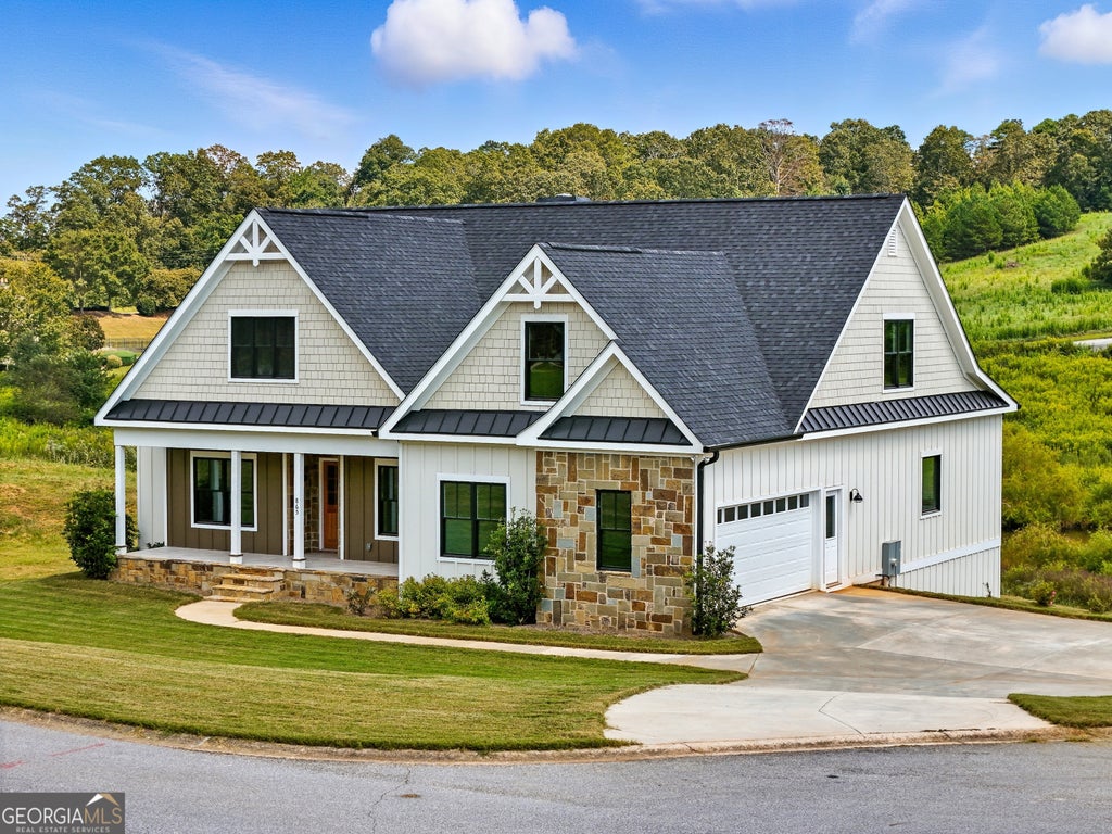Welcome to this stunning 1.5 story ranch with a full basement, nestled in the foothills of the Blue Ridge Mountains. Perfectly positioned on one of the community's few remaining premium cul-de-sac lots with a tranquil pond view, this home offers a serene retreat with unmatched style and quality. The builder spared no expense, showcasing premium finishes throughout-from Blue Wood Pine and tongue & groove pine ceiling and wall accents, to soaring 12' Blue Wood coffered ceilings and natural stone masonry details inside and out. The gourmet kitchen is a true showstopper with leathered quartz countertops, Maytag stainless steel appliances, under-cabinet lighting, and abundant space for entertaining. Luxurious touches continue throughout the home, including a tankless water heater, Belgard paver terrace-level patio, and thoughtfully designed living spaces. Situated on city sewer and crafted with timeless detail, this 4-bedroom, 3-bath residence in Sweetgrass combines rustic elegance with modern comfort. Don't miss the opportunity to experience this exquisite home and its breathtaking setting! Owner Financing Available.