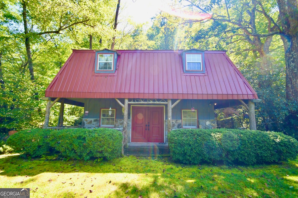 This magical mountain retreat is located right between the locally famous sliding rock and Lake Burton! You are right around the corner from LaPrades Marina, shop & restaurants! Escape to this charming and rustic cabin that literally is steps away from a fabulous trout stream (both sides of the stream) that it is crystal clear with water that is music to the senses! The property backs up to US Forestry Land for immense privacy and offers lovely views of a valley pasture, the mountains and of course the rushing stream right at your back door! There is fabulous multi level custom locust and laurel wood porches overlooking the stream that are accessible from the main level as well as the owners suite upstairs. There is a huge stone fireplace in the great room with wood stove, as well as a second fireplace in the main bedroom. Open kitchen and dining space open up to the great room. There are a total of three bedrooms. Ample outdoor seating on the banks of the stream offers a perfect place to cast and catch your dinner! This could be a perfect short term rental if desired, with approved permit or just a fabulous mountain or fishing getaway! Property will convey fully furnished so can it be ready for immediate enjoyment! Gated access ensures privacy!