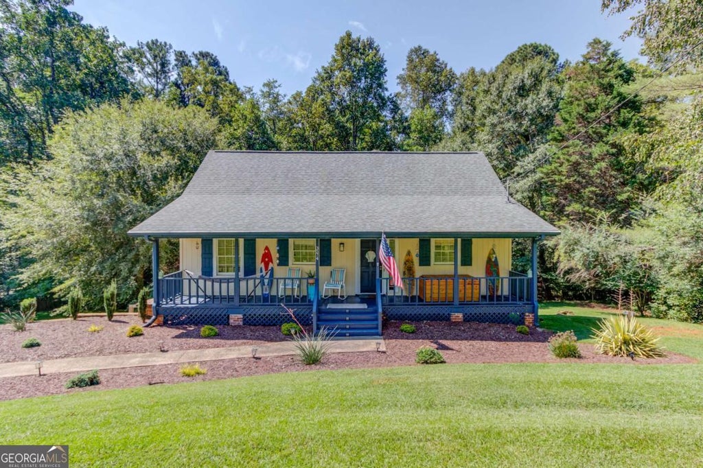 Welcome to 3754 Thompson Bend, a charming Cape Cod home located in a highly desirable North Hall neighborhood within the sought-after Mt. Vernon Elementary district. The main level features a spacious master bedroom, with two additional bedrooms and a full bath upstairs. The updated kitchen features white cabinetry and granite countertops, flowing seamlessly into hardwood floors in the family room, dining area, and kitchen. The partially finished basement is perfect for storage. Enjoy peaceful mornings on the covered rocking chair front porch in this quiet neighborhood, or unwind on the back deck overlooking a serene creek and a flat, fenced in usable backyard. Just 2 miles away, you'll find a convenient boat ramp for easy access to Lake Lanier. Just 6 minutes away from a brand new Publix, making grocery shopping quick and easy, and only 10 minutes from the Gainesville Square with plenty of shopping and dining!