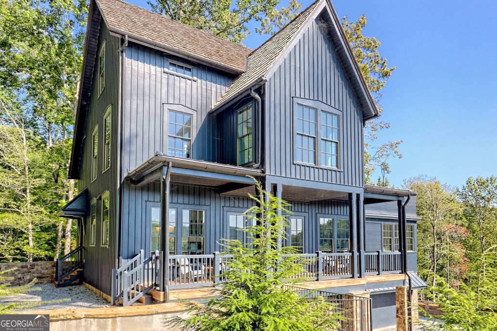 Discover a beautiful and unique family retreat in Burton, a private, gated mountain community on Lake Burton. Designed by renowned architect Lew Oliver, Burton combines timeless design with outdoor living and unmatched walkability. From scenic hiking trails to dining at LaPrade's Marina, every detail of the neighborhood fosters connection with both nature and community. Bordering the Chattahoochee National Forest and historic LaPrade's Marina, residents enjoy private trout fishing on Wildcat Creek, three stocked ponds, and more than five miles of trails that connect directly to the Appalachian Trail. Community amenities include the lakefront Burton Boathouse, pool, spa, fire pit, boat slips, and own private community boat for homeowners. This Custom McKinney Builders home Features-5 bedrooms, 5.5 baths, plus two bunk areas - ideal for hosting family and friends, expansive porches and terraces with wooded and mountain views perfect for outdoor living and dining, open-concept main level with a light-filled family room anchored by a stunning stone fireplace, chef's kitchen with Sub-Zero & Wolf appliances, oversized island, custom cabinetry, and walk-in pantry, luxurious primary suite featuring dual vanities, a large walk-in shower, and spa-like bath area, terrace-level suite with private entry, living area, stone fireplace, and direct outdoor access - perfect for guests, two bunk areas offering flexible sleeping spaces for children, grandchildren, and friends, a must see oversized second-floor terrace with long-range mountain and lake views and a two-car garage with generous storage. Every detail of this home was designed with mountain living in mind-blending warm natural materials, expansive indoor-outdoor spaces, and modern conveniences in a timeless setting. This isn't just a home, but a home with a lifestyle. The Burton Development is "Mountain Living on The Lake"