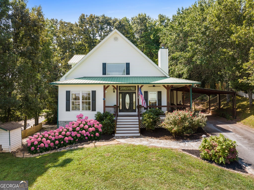 Wake up each day to the charm of downtown Blue Ridge just outside your door. This 4-bedroom, 4-bath home offers more than a place to live, it delivers a lifestyle, blending luxury finishes, mountain-town character, and an unbeatable walk-to-town location. Just two blocks from Main Street, enjoy your morning coffee at a local coffee shop, browse boutique shops, explore nearby parks, or take in seasonal festivals, all within minutes of home. Inside, expansive windows fill the home with natural light, perfectly framing year-round mountain views and a stunning vantage point of downtown. At the heart of the home, the open-concept living room boasts soaring vaulted ceilings and a striking fireplace that creates a warm, inviting centerpiece. The seamless connection between the living, dining, and well-appointed kitchen makes this space ideal for everything from cozy nights by the fire to lively gatherings with friends. The primary suite and a second bedroom on the main floor offer convenience and comfort, with rich hardwood floors adding timeless elegance. Follow the handcrafted staircase to find two spacious upstairs bedrooms with a shared bath, perfect for family or guests. The finished basement offers flexible space for a media room, office, gym, or additional guest accommodations, and includes a two-car garage with a second private driveway access. A main-level carport provides even more parking convenience. Step outside to the beautifully landscaped, fenced backyard, your private tranquil haven. Whether it's morning coffee on the porch, evening wine or smores by the firepit, or a weekend gathering under the stars, this outdoor space is designed for both relaxation and entertaining. This is more than a home, it's the essence of in town Blue Ridge living, where breathtaking mountain sunsets and walkable small-town charm meet in perfect harmony.
