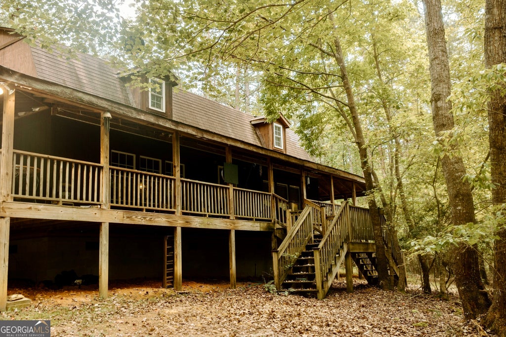 Surrounded by nature, this charming 3-bedroom, 2-bath waterfront home is nestled on 1.77+/- private acres offering the perfect balance of peaceful seclusion and convenient access to Cleveland, Helen, and Habersham. The main level features an open kitchen, dining, and living area with a cozy gas log fireplace, a walk-in pantry, and a spacious primary suite. The primary bath connects to the laundry room, which also opens outdoors for convenient clean-up after enjoying time outside. Upstairs, you'll find two generously sized bedrooms and a full bath-perfect for family, guests, or even a home office. A wraparound porch surrounds the home, providing the perfect spot to relax and take in the quiet, private setting. Don't forget the 2 outbuilding that offer great storage storage or a work space. Whether you're looking for a year-round home or a weekend retreat, this property offers the best of North Georgia living.