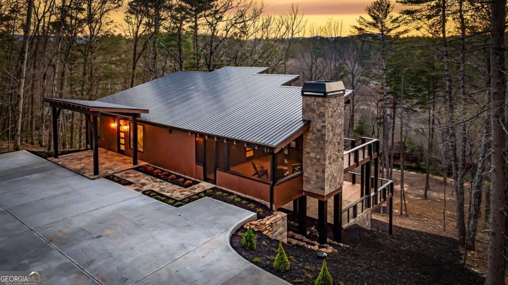 Brand new contemporary mountain construction move-in ready in a small development on Fightingtown Creek. There will be 6 homes on 30 acres to preserve the serenity that brings us to the mountains. Appointed with quality furnishings and accessories, three fireplaces, situated on 2.84 usable acres with 267 ft. of Fightingtown creek frontage-huge screened porch with fireplace and plenty of open decks and stone patios. You own to the center of the creek, so creekside activities are welcome. Wet your hook or launch your kayak-fiber optics internet on site.