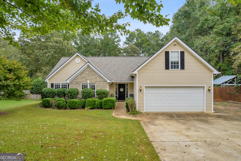 This ranch style home sitting on almost a full acre is the perfect home for you! Inside, the vaulted living room feels like the heart of the home, with a stone fireplace and custom mantle just waiting for movie nights or quiet evenings by the fire. Hardwood floors carry you into a sunny eat-in kitchen, with stainless steel appliances, granite counters, and a walk-in pantry with sliding barn doors. A flex room right off the kitchen is ready to become your office, playroom, or a cozy spot to curl up with a good book. Tucked away down the hall, the primary suite offers both comfort and breathing room. Vaulted ceilings add an airy touch, while the walk-in closet keeps everything neatly in place. The bathroom is thoughtfully designed for everyday ease, with a soaking tub for quiet evenings, a separate shower, and double vanities that make mornings a little simpler. Two more bedrooms and a full bath provide space for family, friends, or overnight guests. Outside, the covered patio and fenced-in backyard are meant for memories. Think cookouts on game days, marshmallow roasts by the fire pit, or even just a quiet cup of coffee as the sun comes up. With plenty of room for pets, gardens, and friendly gathering, the space is as versatile as it is inviting. Bonus: The roof is only 3 years old and the water heater is only 2 years old! Schedule your showing today and make this your own!