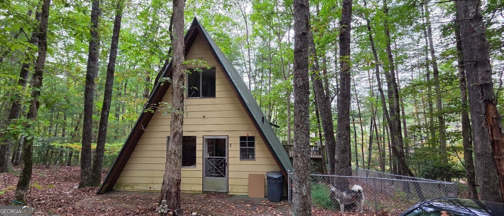 Discover the potential in this unique A-frame home tucked away on a private gated drive. Situated on two spacious lots totaling over three-quarters of an acre, this property offers rare privacy and peaceful water views. Inside, the home features two bedrooms-including a cozy loft overlooking the main living area-and one full bath. The open-concept design, high ceilings, and signature A-frame windows create a light-filled space ready for your personal touch. Outside, enjoy your own small dock on the pond, perfect for fishing or simply relaxing by the water. A portion of the yard is fully fenced, offering flexibility for pets or outdoor living. Whether you're looking for a weekend getaway, a short-term rental opportunity, or a renovation project with character, this lakefront property is full of possibilities.