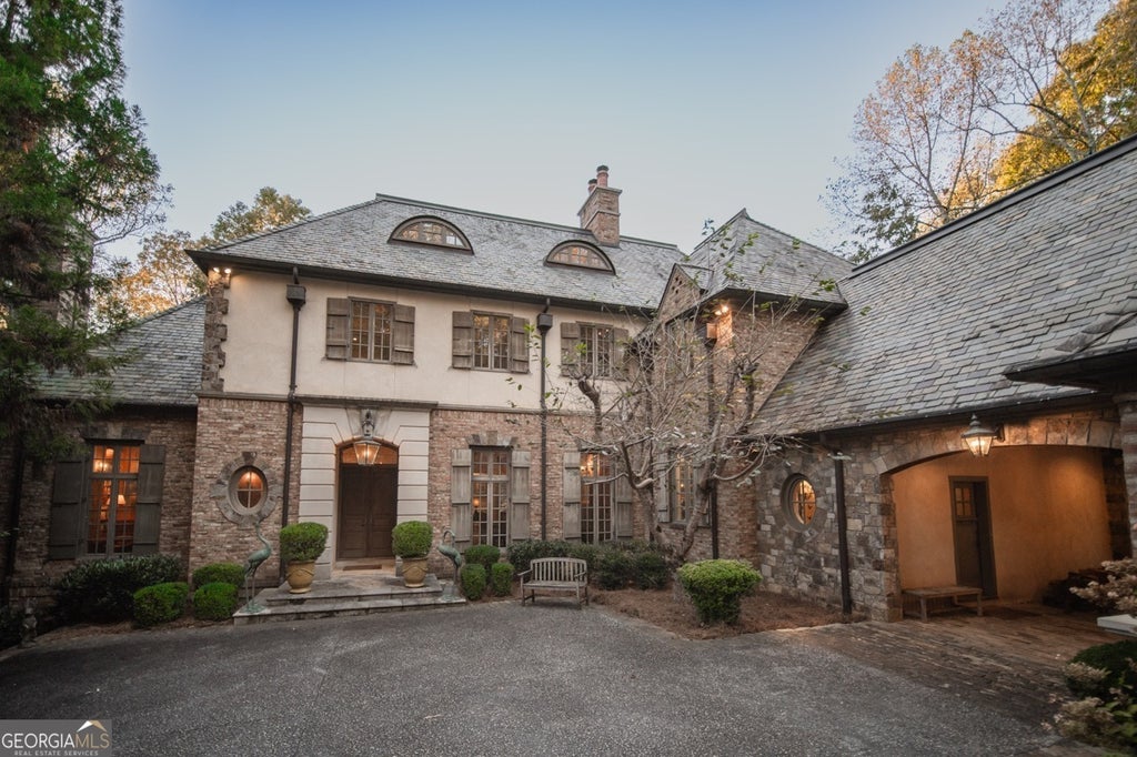 Welcome to Corbett Manor, an extraordinary 112-acre estate where refined luxury and natural beauty exist in perfect harmony. Just five minutes from downtown Clarkesville, this remarkable property offers an elevated lifestyle surrounded by private hardwood forests and impeccably maintained grounds. The stately exterior showcases timeless craftsmanship with a sophisticated blend of stone, brick, and hard-coat stucco, complemented by a slate roof and copper gutters. Through grand mahogany doors, the foyer welcomes you with Italian limestone flooring and soaring 13-foot ceilings. Limestone tile and rich heart pine floors flow throughout the main level, while floor-to-ceiling custom windows flood the home with natural light. A Lutron lighting system enhances both ambiance and ease of living. At the heart of the home, the chef's kitchen is designed for both beauty and performance, featuring commercial-grade appliances including dual Sub-Zero refrigerators and freezers, custom heart pine cabinetry, a DACOR dual-fuel range with double ovens, stainless steel hood, and a Gaggenau pizza oven. Granite and butcher-block countertops, an oversized island with prep sink, two dishwashers, and a limestone farmhouse sink complete the space. Adjacent, a cozy sitting area with heated floors, fireplace, and wet bar invites relaxed gatherings. The kitchen and dining area, seating ten overlook the private "secret garden"-a manicured courtyard with fountain, potting room, and built-in grill ideal for entertaining and alfresco dining. The primary suite is a serene retreat featuring a sitting area with fireplace and imported French marble mantel, a spa-inspired bath with heated floors, Jacuzzi tub, steam shower, custom dual-sided walk-in closet, and a private screened balcony. Just beyond, the library offers wormy chestnut paneling and a cozy fireplace. The second level hosts four spacious bedrooms, each with en-suite baths and walk-in closets. A Juliet balcony overlooks the Great Room with custom wood beams and soaring 26-foot vaulted ceilings. This level also includes a craft room and a private bedroom with bonus space and separate access above the three-car garage ideal for guests or a live-in nanny. Designed for entertaining, the terrace level features a game room with billiards, dry bar, fireplace, home theater, fitness room, and full bath, along with a generously sized laundry room, mudroom, and direct access to the property's dog run. Outdoor living spaces include a screened porch with bluestone flooring, expansive rear balcony, and courtyard cooking area, while imported antique French iron railings add old-world charm throughout. Additional features include a walk-in pantry, custom cabinetry, upgraded security system, abundant storage, and a beautifully gated entry. Corbett Manor is a rare sanctuary of timeless elegance, comfort, and thoughtful design offering an unparalleled luxury lifestyle in a truly remarkable setting.